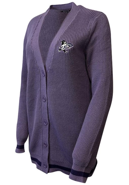 Gear up for the ultimate game day experience with the incredible K-State Wildcats Womens Lavender Vermillion Cardigan! This Wildcats Long Sleeve Top features a chenille applique team logo on center back. Stay cozy and comfortable throughout the game with this high-quality Womens K-State Wildcats Wildcats Cardigan.