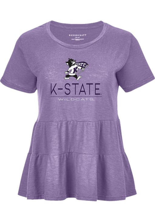 Display your team spirit with this remarkable K-State Wildcats Lavender Willow Peplum Short Sleeve T-Shirt! The K-State Wildcats Short Sleeve Tee showcases a team name and logo on center chest that truly sets it apart. Stand out from the crowd and proudly declare your allegiance to the Wildcats with this exceptional Lavender K-State Wildcats T-Shirt. Fear The Cats!