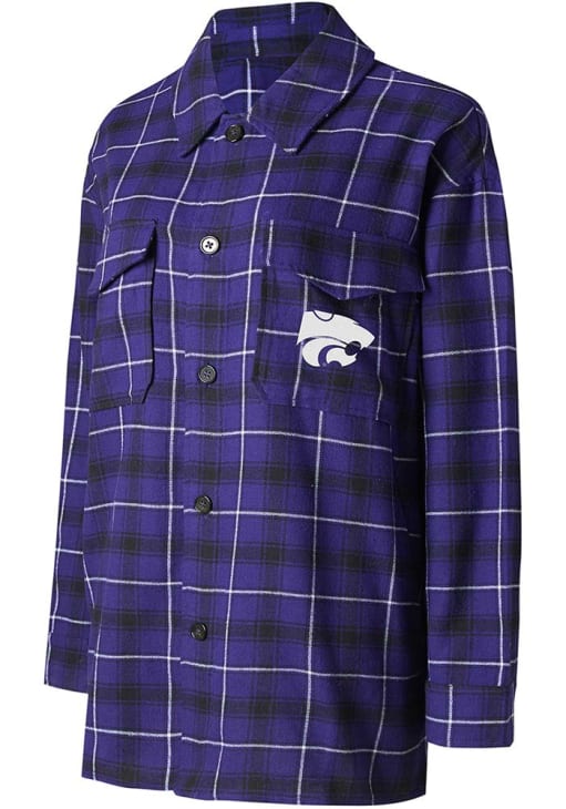 All Wildcats fans will feel comfortable in this K-State Wildcats Purple Womens Sleep Shirt. This K-State Wildcats Boyfriend Lounge Shirt is great for sleepovers or lounging around the house. This Sleep Shirt feature a embroidered team logo on front left pocket.