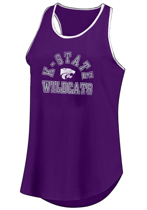 Elevate your tailgating style with this K-State Wildcats Womens Tank Top. Stay fashionable and comfortable in the refreshing Purple Contrast Trim Sleeveless Shirt. Discover the enticing details of this K-State Wildcats Tank Top, showcasing a screenprint team name and team logo on center front that's sure to impress.