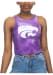 Elevate your tailgating style with this K-State Wildcats Womens Tank Top. Stay fashionable and comfortable in the refreshing Purple Mist First Down Crop Sleeveless Shirt. Discover the enticing details of this K-State Wildcats Tank Top, showcasing a screen print team logo on center chest that's sure to impress.
