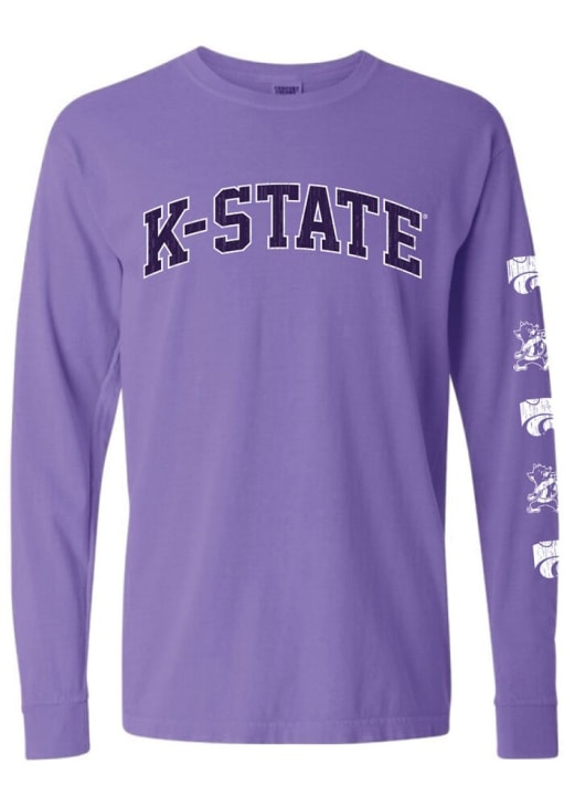 Show your K-State Wildcats spirit in this K-State Wildcats Purple T-Shirt! This K-State Wildcats Repeat Long Sleeve T-Shirt makes a great layer for cooler nights cheering on the Wildcats. Featuring a screenprint team name and logo, this K-State Wildcats Long Sleeve LS Tee is an essential addition for every fan. Fear The Cats!