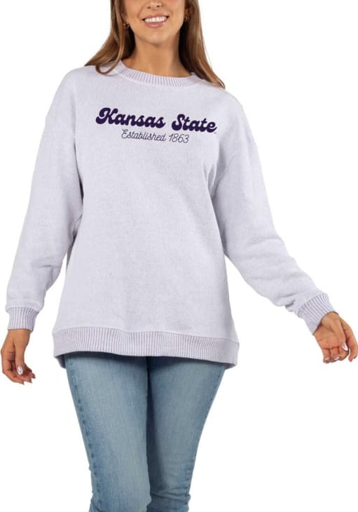 Gear up for the ultimate game day experience with this remarkable K-State WildcatsWomens Purple Warm Up Crew Sweatshirt! Designed with the true fan in mind, this Wildcats Long Sleeve Sweatshirt features a embroidered chainstitch team name on center chest. Stay warm and comfortable with this Womens K-State Wildcats Wildcats Crew Sweatshirt.