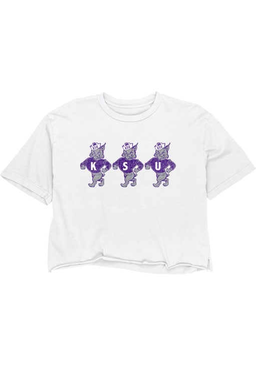 Display your team spirit with this remarkable K-State Wildcats White Boyfriend Crop Short Sleeve T-Shirt! The K-State Wildcats Short Sleeve Tee showcases a screen print vault graphic on center chest that truly sets it apart. Stand out from the crowd and proudly declare your allegiance to the Wildcats with this exceptional White K-State Wildcats T-Shirt. Fear The Cats!
