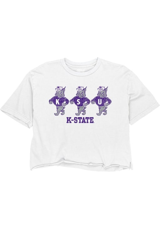 Display your team spirit with this remarkable K-State Wildcats White Boyfriend Crop Short Sleeve T-Shirt! The K-State Wildcats Short Sleeve Tee showcases a screen print vault graphic on center chest that truly sets it apart. Stand out from the crowd and proudly declare your allegiance to the Wildcats with this exceptional White K-State Wildcats T-Shirt. Fear The Cats!
