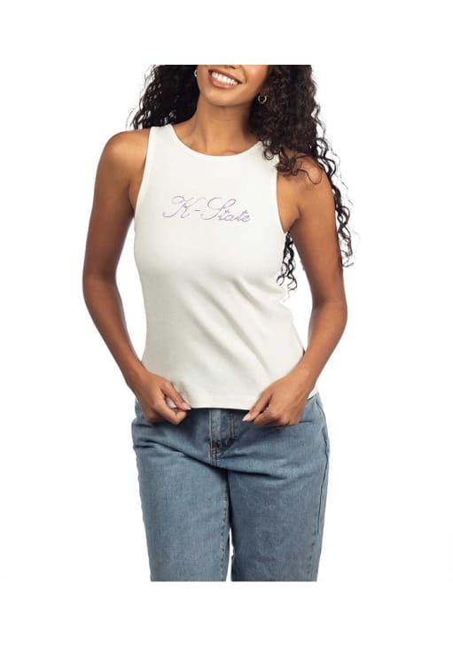 Elevate your tailgating style with this K-State Wildcats Womens Tank Top. Stay fashionable and comfortable in the refreshing White Classic Sleeveless Shirt. Discover the enticing details of this K-State Wildcats Tank Top, showcasing a rhinestone team name on center chest that's sure to impress.