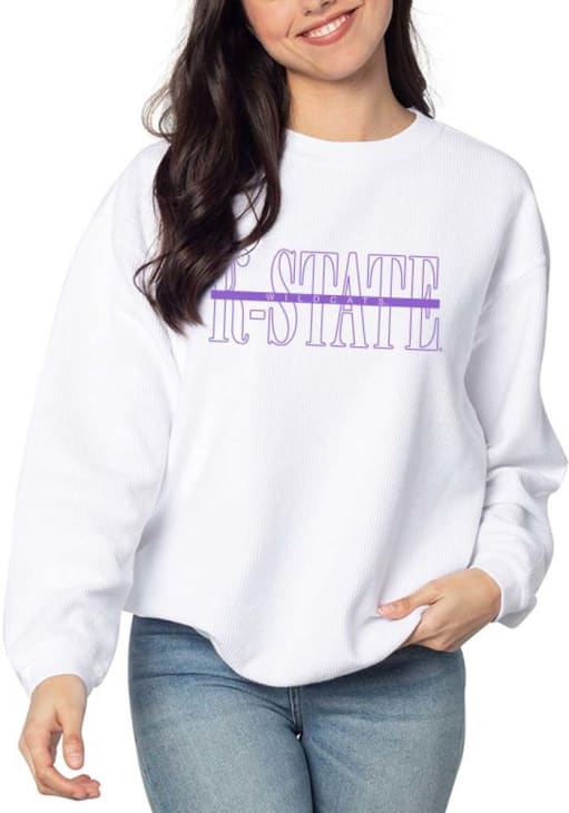 Gear up for the ultimate game day experience with this remarkable K-State WildcatsWomens White Corded Crew Sweatshirt! Designed with the true fan in mind, this Wildcats Long Sleeve Sweatshirt features a screen print team graphic on center chest. Stay warm and comfortable with this Womens K-State Wildcats Wildcats Crew Sweatshirt.