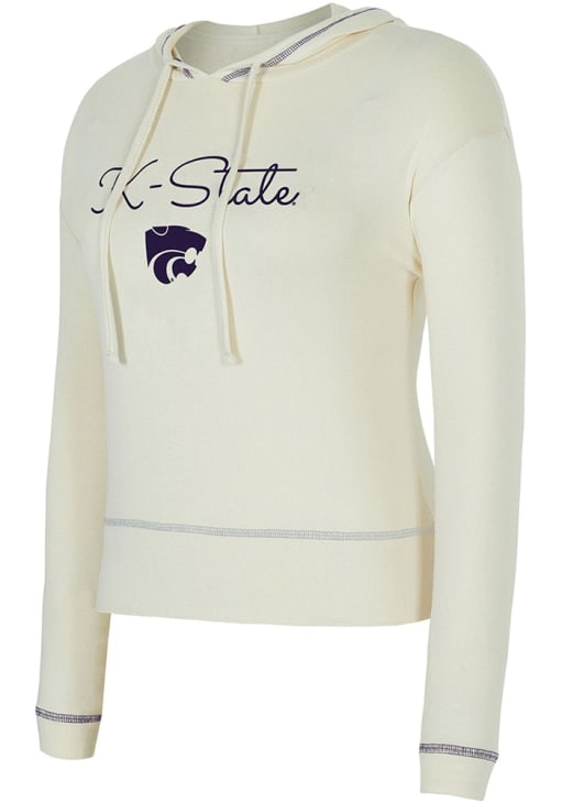 Embrace your Wildcats pride and showcase your team spirit with confidence in this K-State Wildcats Long Sleeve Hoodie! Stay warm and stylish with the K-State Wildcats Womens White Kaki Hooded Sweatshirt. Designed with emrboidered team name and logo on center chest, this Wildcats Long Sleeve Hoodie is a must-have for dedicated fans.