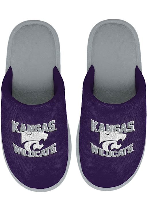 Product Details Product Details All over team-colored designEmbroidered team logo and wordmarkSuper soft plush materialGripped outsoles to avoid slippingGreat for watching the game from home!Small fits men's 7-8Medium fits men's 9-10Large fits men's 11-12XL fits men's 13-14 Officially Licensed Make gamedays more comfortable with these K-State Wildcats Wordmark Stacked Big Logo Mens Slippers from Rally House! Show Wildcats support with these Mens Slippers featuring team logo with team colors.
