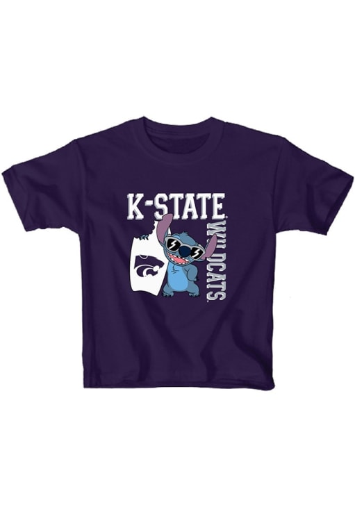 Product Details Product Details Screen printed graphic on center chestCover seam stitched on collarRelaxed fitDouble needle stitched sleeves and bottom hemShort sleeveCrew neckPerfect for young fans!100% Cotton Officially Licensed Your future K-State Wildcats will be gameday ready in this Youth Short Sleeve Tee. This Stitch T-Shirt features a screen print team graphic.