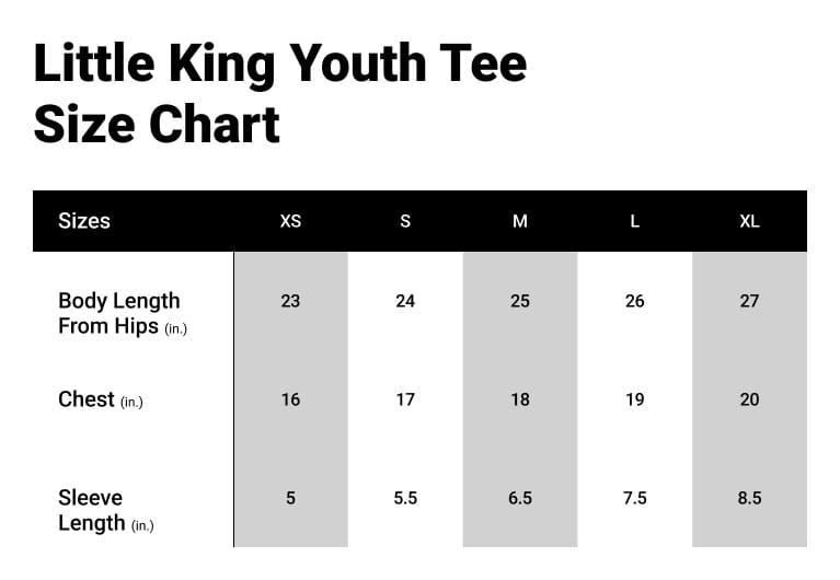 Size Chart for Youth K-State Wildcats White Little King Outline Arch Short Sleeve T-Shirt