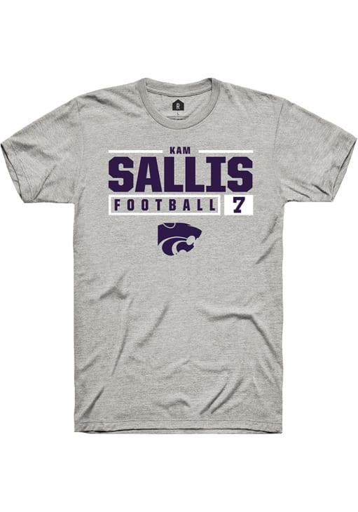 Kameron Sallis Ash K-State Wildcats NIL Stacked Box Short Sleeve T Shirt