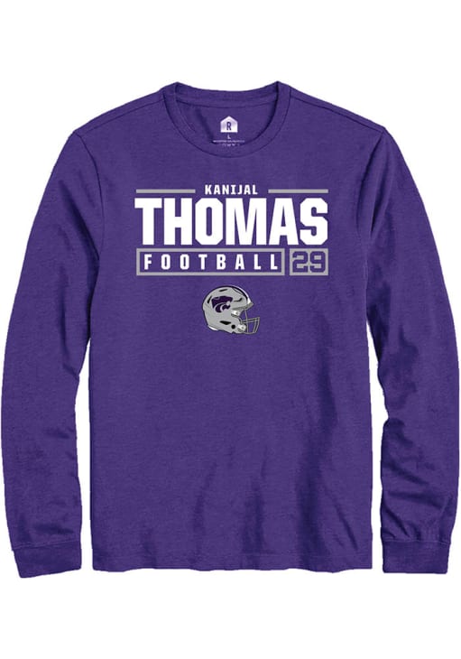Kanijal Thomas Rally Mens Purple K-State Wildcats NIL Stacked Box Tee