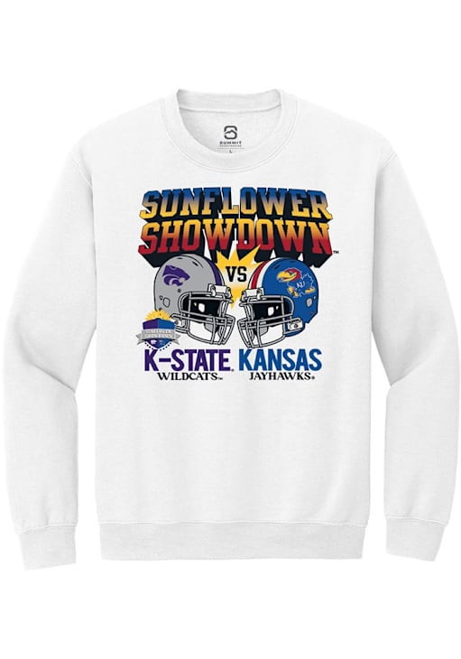 Gear up for the ultimate game day experience with this remarkable Mens White 134th Annual Sunflower Showdown Crew Sweatshirt! Designed with the true fan in mind, this Sunflower Showdown Long Sleeve Crew Sweatshirt features a twill team graphic on front chest. Stay warm and comfortable with this Mens Sunflower Showdown Crew Sweatshirt.