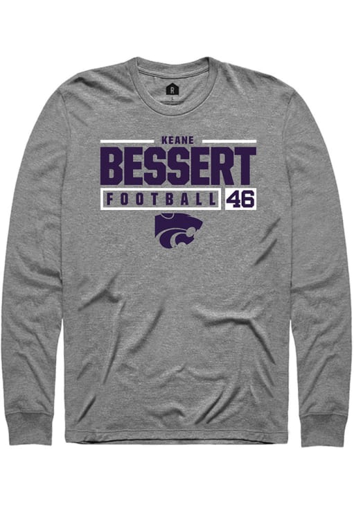 Show your K-State Wildcats spirit in this K-State Wildcats Graphite T Shirt! This K-State Wildcats NIL Stacked Box Long Sleeve T Shirt makes a great layer for cooler nights cheering on the Wildcats. Featuring a custom graphic with player's name and number, this K-State Wildcats Long Sleeve Tee is an essential addition for every fan. Fear The Cats!