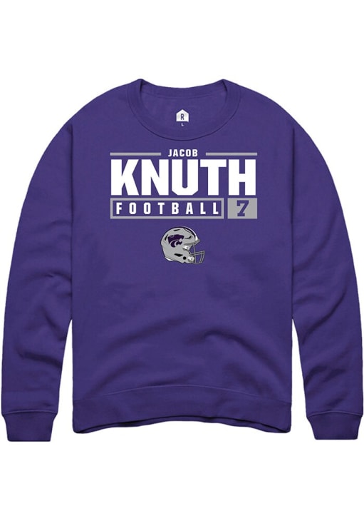 Jacob Knuth Rally Mens Purple K-State Wildcats NIL Stacked Box Crew Sweatshirt
