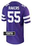 Size Chart for Kyle Rakers Nike Youth Purple K-State Wildcats NIL Game Football Jersey Jersey