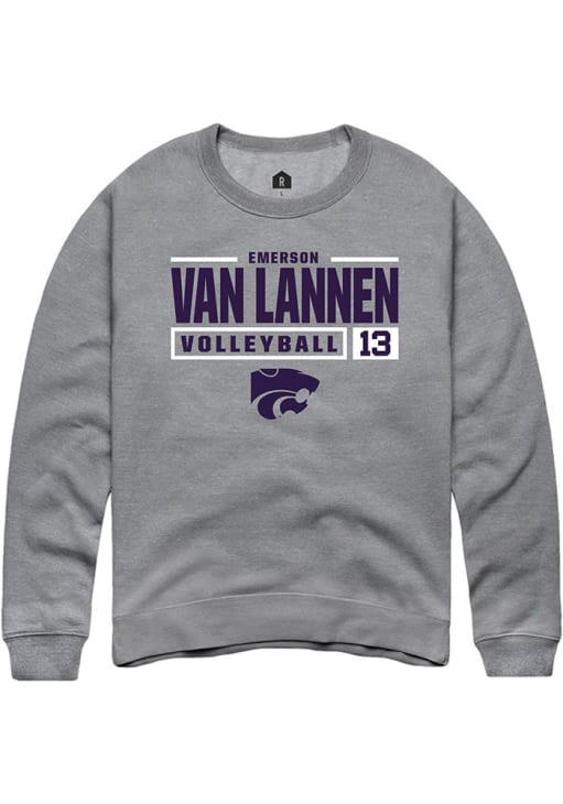 Emerson Van Lannen Rally Mens Graphite K-State Wildcats NIL Stacked Box Crew Sweatshirt
