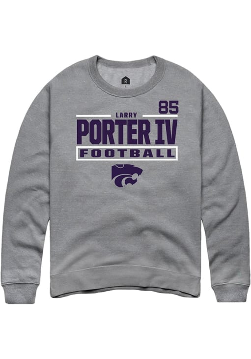Support your K-State Wildcats and favorite Larry Porter IV in this K-State Wildcats Mens Graphite Football NIL Stacked Box Player Crew. This Crew Sweatshirt features a NIL graphic, and is sure to stand out in the stadium. Perfect to wear on game day or any day!