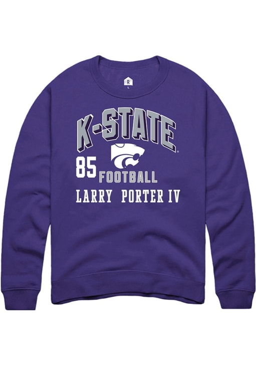 Support your K-State Wildcats and favorite Larry Porter IV in this K-State Wildcats Mens Purple Football NIL Arch Logo Player Crew. This Crew Sweatshirt features a NIL graphic, and is sure to stand out in the stadium. Perfect to wear on game day or any day!