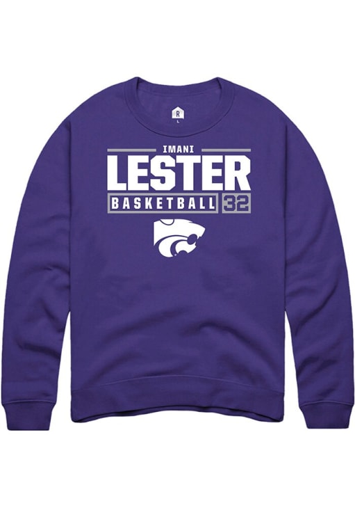 Imani Lester Rally Mens Purple K-State Wildcats NIL Stacked Box Crew Sweatshirt