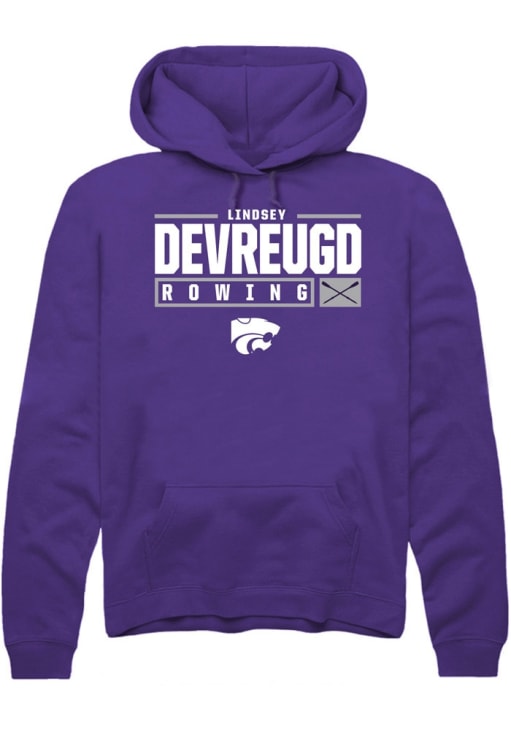 Lindsey DeVreugd Rally Mens Purple K-State Wildcats NIL Stacked Box Hooded Sweatshirt