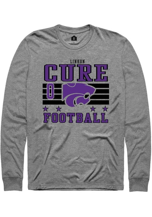 Embrace the spirit of your favorite player in this K-State Wildcats Grey Football NIL Striped Linkon Cure Long Sleeve Player Tee! This Player T Shirt features a NIL graphic, so everyone will know you cheer for K-State Wildcats, Linkon Cure! This is the perfect Wildcats Player Tee for game days. Fear The Cats!
