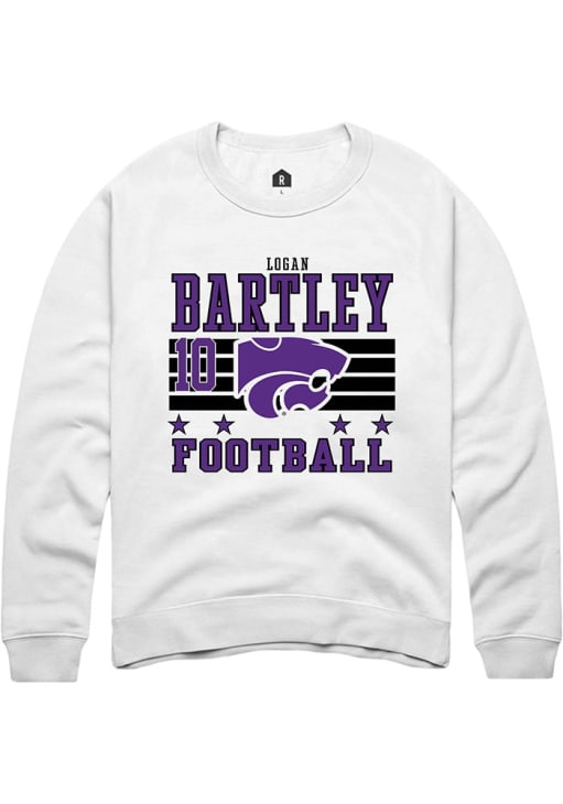 Support your K-State Wildcats and favorite Logan Bartley in this K-State Wildcats Mens White Football NIL Striped Player Crew. This Crew Sweatshirt features a NIL graphic, and is sure to stand out in the stadium. Perfect to wear on game day or any day!