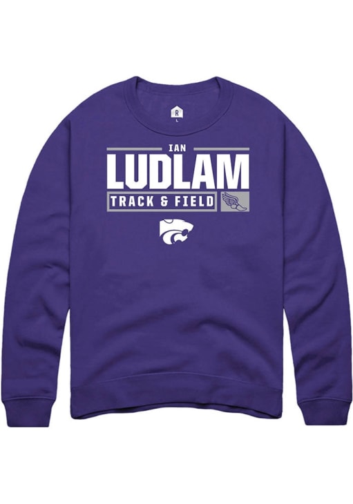 Ian Ludlam Rally Mens Purple K-State Wildcats NIL Stacked Box Crew Sweatshirt