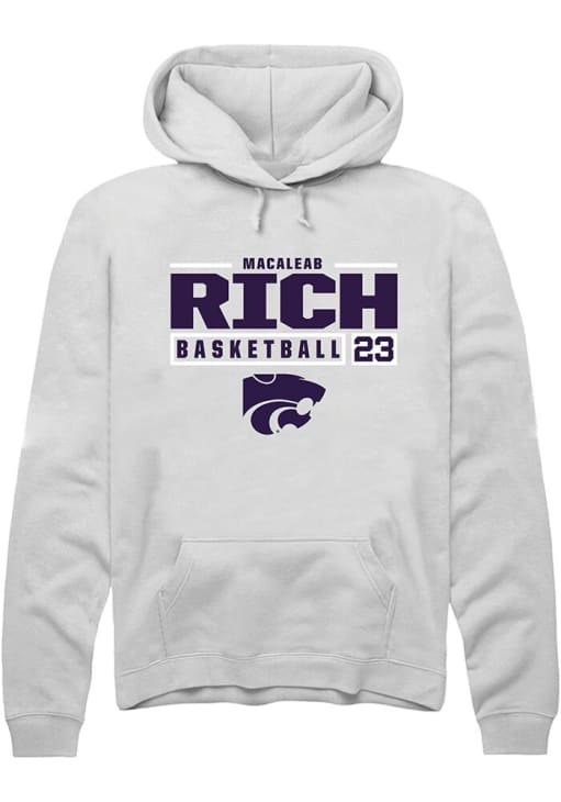 Macaleab Rich Rally Mens White K-State Wildcats NIL Stacked Box Hooded Sweatshirt