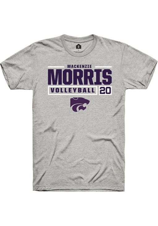 Mackenzie Morris Ash K-State Wildcats NIL Stacked Box Short Sleeve T Shirt
