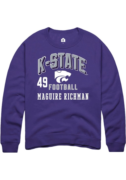 Support your K-State Wildcats and favorite Maguire Richman in this K-State Wildcats Mens Purple Football NIL Arch Logo Player Crew. This Crew Sweatshirt features a NIL graphic, and is sure to stand out in the stadium. Perfect to wear on game day or any day!