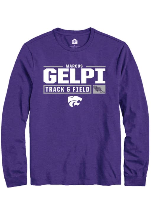 Marcus Gelpi Rally Mens Purple K-State Wildcats NIL Stacked Box Tee