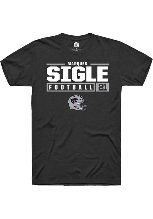 Marques Sigle Black K-State Wildcats NIL Stacked Box Short Sleeve T Shirt