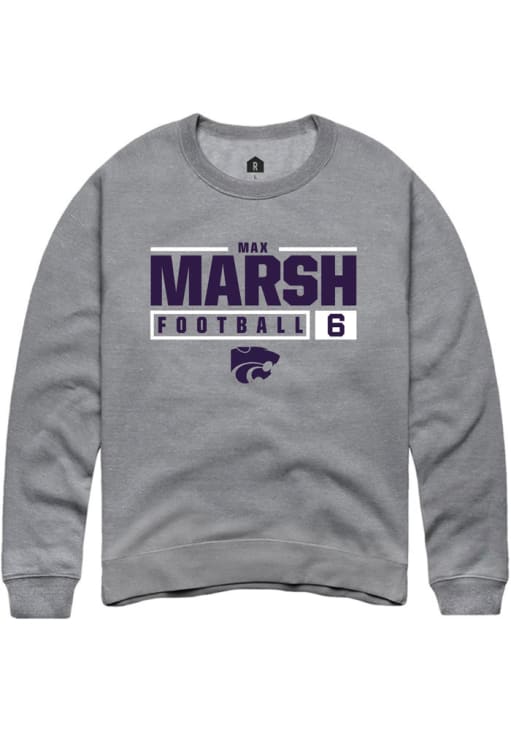 Max Marsh Rally Mens Graphite K-State Wildcats NIL Stacked Box Crew Sweatshirt