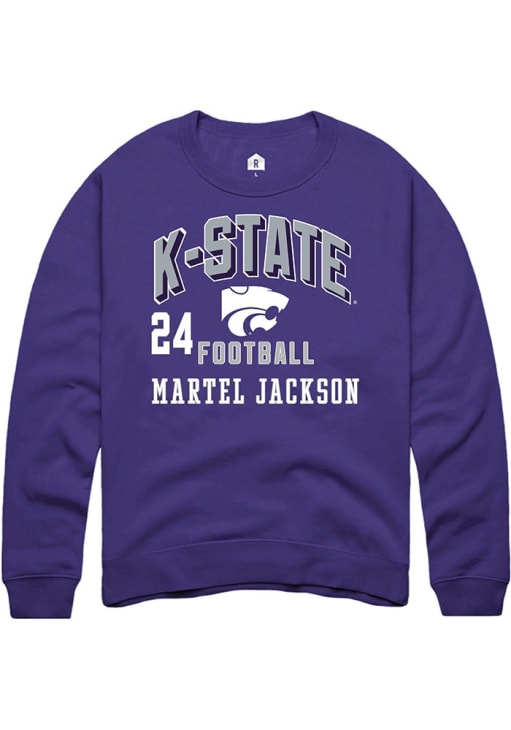 Support your K-State Wildcats and favorite Martel Jackson in this K-State Wildcats Mens Purple Football NIL Arch Logo Player Crew. This Crew Sweatshirt features a NIL graphic, and is sure to stand out in the stadium. Perfect to wear on game day or any day!