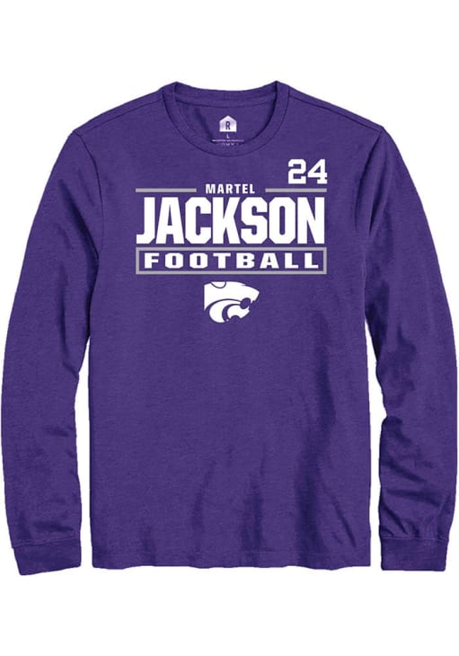 Embrace the spirit of your favorite player in this K-State Wildcats Purple Football NIL Stacked Box Martel Jackson Long Sleeve Player Tee! This Player T Shirt features a NIL graphic, so everyone will know you cheer for K-State Wildcats, Martel Jackson! This is the perfect Wildcats Player Tee for game days. Fear The Cats!