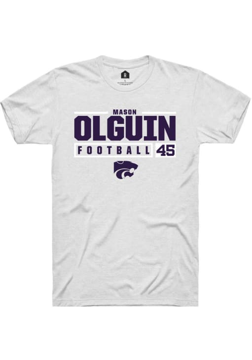 Mason Olguin White K-State Wildcats NIL Stacked Box Short Sleeve T Shirt