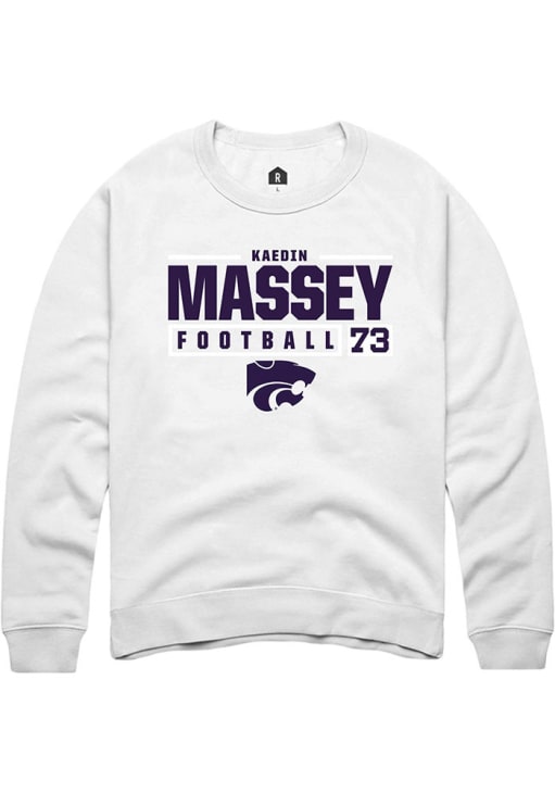 Kaedin Massey Rally Mens White K-State Wildcats Football NIL Stacked Box Crew Sweatshirt