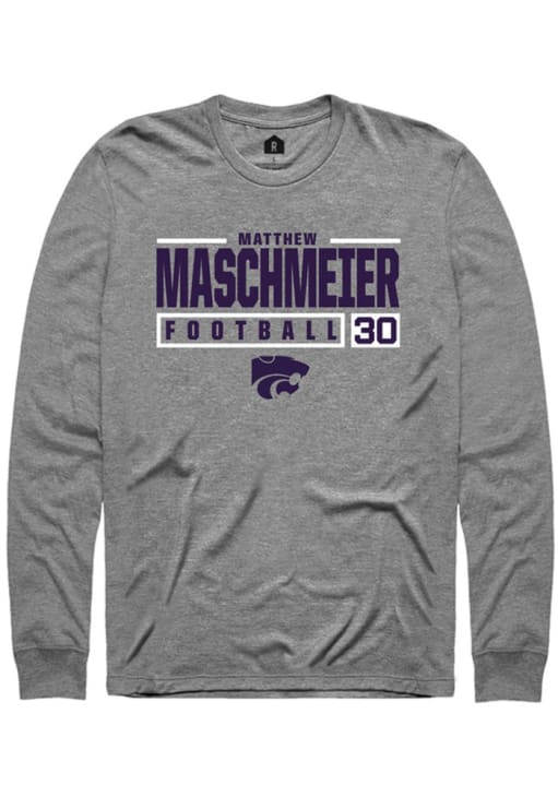 Matthew Maschmeier Rally Mens Graphite K-State Wildcats NIL Stacked Box Tee