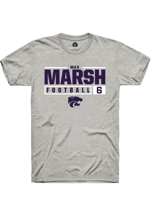 Max Marsh Ash K-State Wildcats NIL Stacked Box Short Sleeve T Shirt