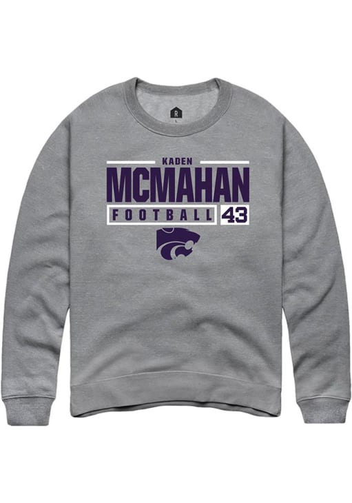 Kaden McMahan Rally Mens Graphite K-State Wildcats NIL Stacked Box Crew Sweatshirt