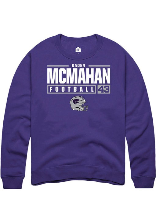 Kaden McMahan Rally Mens Purple K-State Wildcats NIL Stacked Box Crew Sweatshirt