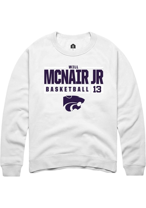 Will McNair Jr. Rally Mens White K-State Wildcats NIL Stacked Box Crew Sweatshirt