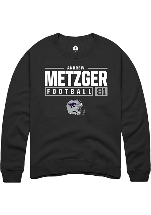 Andrew Metzger Rally Mens Black K-State Wildcats NIL Stacked Box Crew Sweatshirt