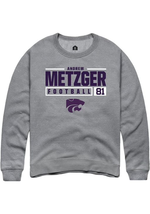 Andrew Metzger Rally Mens Graphite K-State Wildcats NIL Stacked Box Crew Sweatshirt