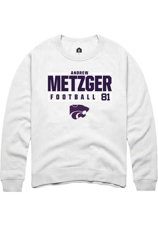 Andrew Metzger Rally Mens White K-State Wildcats NIL Stacked Box Crew Sweatshirt
