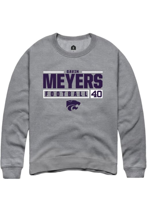 Gavin Meyers Rally Mens Graphite K-State Wildcats NIL Stacked Box Crew Sweatshirt