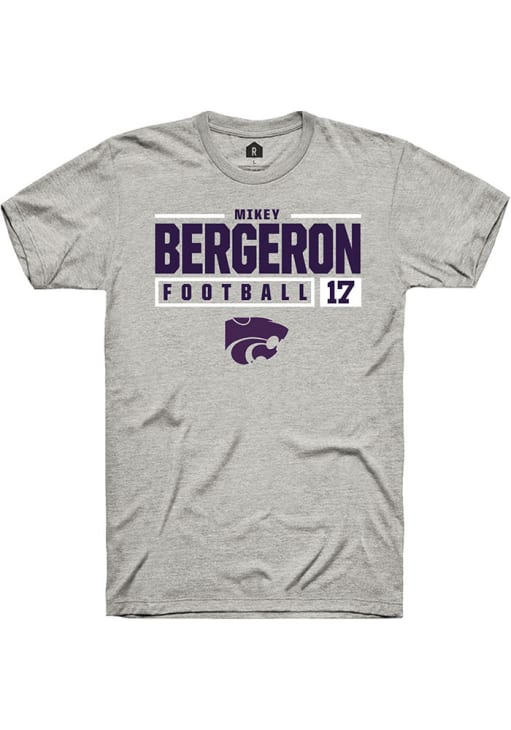 Mikey Bergeron Ash K-State Wildcats NIL Stacked Box Short Sleeve T Shirt