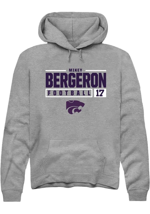 Mikey Bergeron Rally Mens Graphite K-State Wildcats NIL Stacked Box Hooded Sweatshirt
